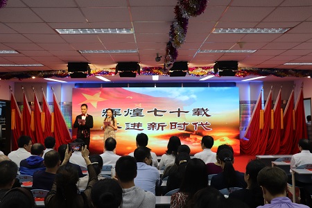 9月26日,成都建材院举办“歌唱祖国—辉煌七十载,奋进新时代”庆祝中华人民共和国成立70周年主题活动。公司董事长焦烽、党委书记冯艳、总经理吴宏等在院公司领导及全体员工300余人参加了活动。