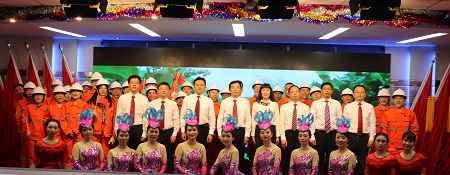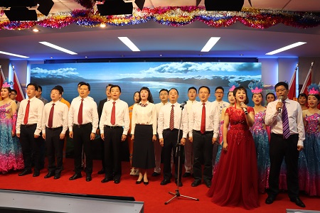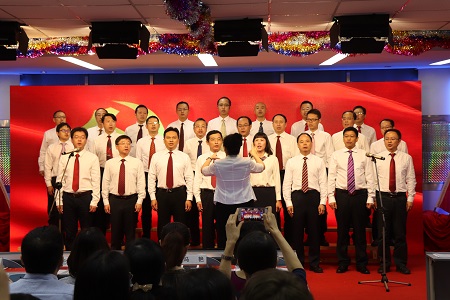 公司国内外现场员工与活动主会场演出人员齐唱-《今天是你的生日,我的中国》