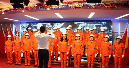 主题活动在公司领导带头参与的大合唱——《没有共产党就没有新中国》《歌唱祖国》雄壮豪迈的歌声中拉开序幕。大家激情高歌,唱出了对党的深情和对祖国的热爱。歌曲联唱《东方红》《在希望的田野上》《走进新时代》等一首首耳熟能详的经典曲目让大家把思绪放飞七十年,从歌声中共同回忆伟大祖国走过的七十年光辉历程。以埃及G6项目的故事创作的情景剧《再发一条朋友圈》,表现了成都院的员工舍小家,顾大家,顽强拼搏,创造了世界水泥工程建设史上的奇迹,用真情、汗水和热血在“一带一路”沿线国家书写了“相遇相知、共建共享、合作共赢、文化融通”的动人故事,为国家和企业赢得了声誉。小合唱《今天是你的生日,我的中国》,用崭新的表现形式让公司国内外现场的员工穿越时空,与活动主会场的演出人员同唱一首歌,共同祝福祖国母亲生日快乐!诗朗诵《祖国颂》,表达了中华儿女对祖国五千年灿烂文明的自豪和新中国成立七十年来取得的辉煌成就的礼赞。大合唱《咱们工人有力量》,用坚实有力、豪迈热烈的旋律,讴歌了劳动的美好,让人斗志昂扬。活动在公司领导和现场全体员工共同唱响的《我的祖国》优美激昂雄壮的歌声中落下帷幕。