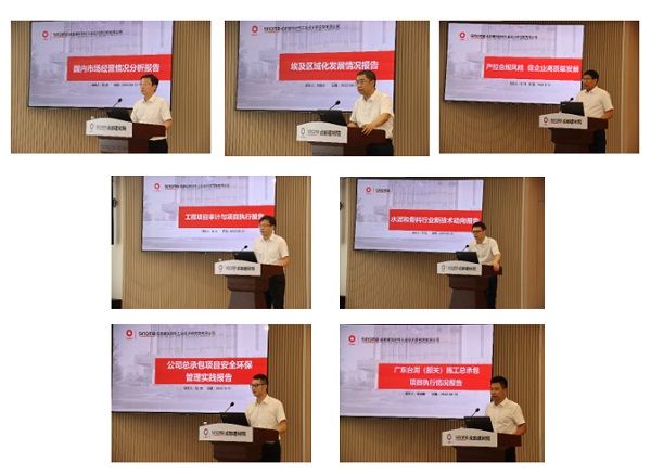 会议期间,公司副总经理陈涛、刘晓宁、李林、林杰分别就国内市场经营、埃及区域化发展、严控合规风险、工程项目审计与执行等业务作专项报告;技术副总监张程、安全环保部部长包锐、台泥(韶关)项目部经理杨晓鹏分别就水泥和骨料行业新技术动向、工程总承包项目安全环保管理实践及台泥(韶关)施工总承包项目执行情况作专题报告。