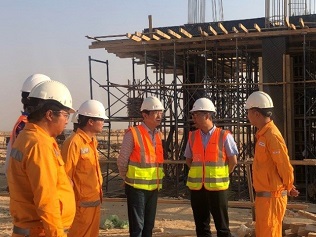公司副总经理刘晓宁、总经理助理兼市场总监王万弘、投资及新业务副总监马亚兵、埃及分公司总经理吴勇等陪同检查。