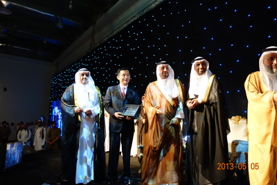 2013年5月5号,由成都建材院有限公司(CDI)以工程总承包(EPC)建设的HCC日产5000吨水泥熟料工程在沙特阿拉伯哈伊勒(HAIL)市举行隆重的竣工庆典仪式,庆典仪式由业主主办。沙特王子兼哈伊勒省省长Saud Bin Abdulmohsen、中国驻沙特大使馆李成文大使、中国驻沙特经济商务参赞处王友参赞、沙特政府官员、沙特工商会及水泥协会官员、项目股东及沙特水泥厂商共计200余人参加了仪式。我公司焦烽董事长应邀参加庆典仪式并代表成都院(CDI)领取了沙特王子授予成都院(CDI)的特别贡献奖。