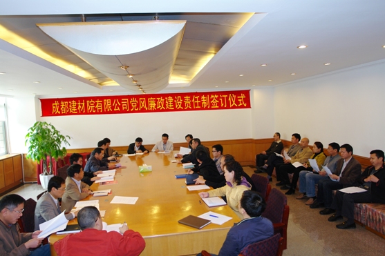 为认真贯彻落实中共中央第十八届中央纪律检查委员会第二次全体会议精神,按照中共中央、国务院《关于实行党风廉政建设责任制的规定》和中央纪委、国务院国资委、集团及中材国际党委有关反腐倡廉的要求,深化党风廉政,加强反腐倡廉。日前,成都建材院有限公司所属各部门、各分公司第一负责人及各党支部书记与公司签订了2013年度《党风廉政建设责任书》。