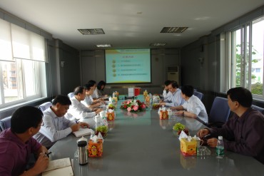 2012年9月26日,中材集团总经理刘志江、中材股份副总裁孙铁石、财务总监于凯军、工程事业部副部长江平一行到我公司调研指导工作。我公司董事长焦烽、党委书记兼副董事长申安昌、总经理吴宏、党委副书记王开明、副总经理冯艳、总经理助理兼资产财务部部长李林参加了汇报座谈。