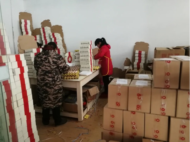 安徽石台县合作社员工正在为禾苞蛋电商平台分装土鸡蛋